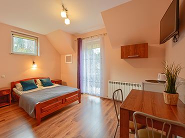 Apartamenty od 1-6 wyposażone są w łazienkę z prysznicem, lodówkę, czajnik, przybory kuchenne, telewizor oraz wi-fi.
